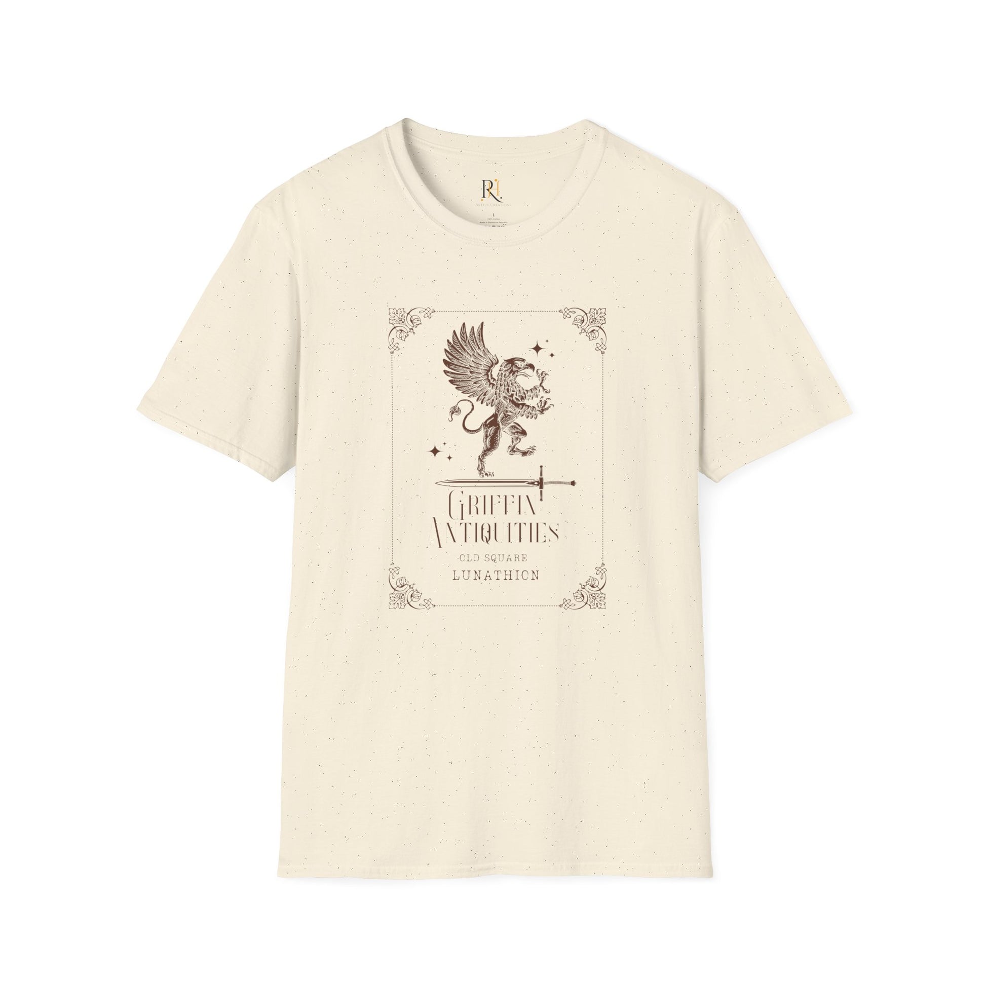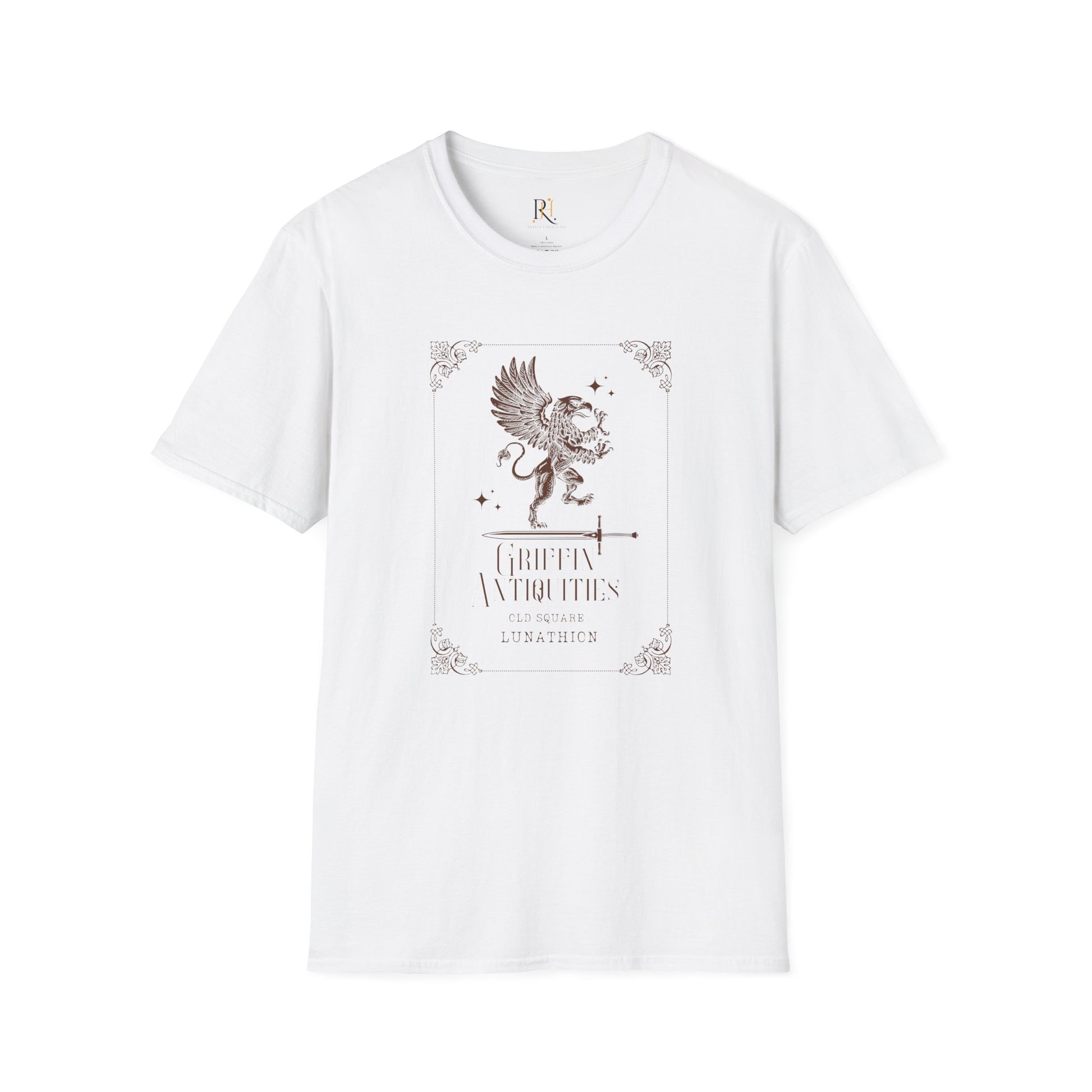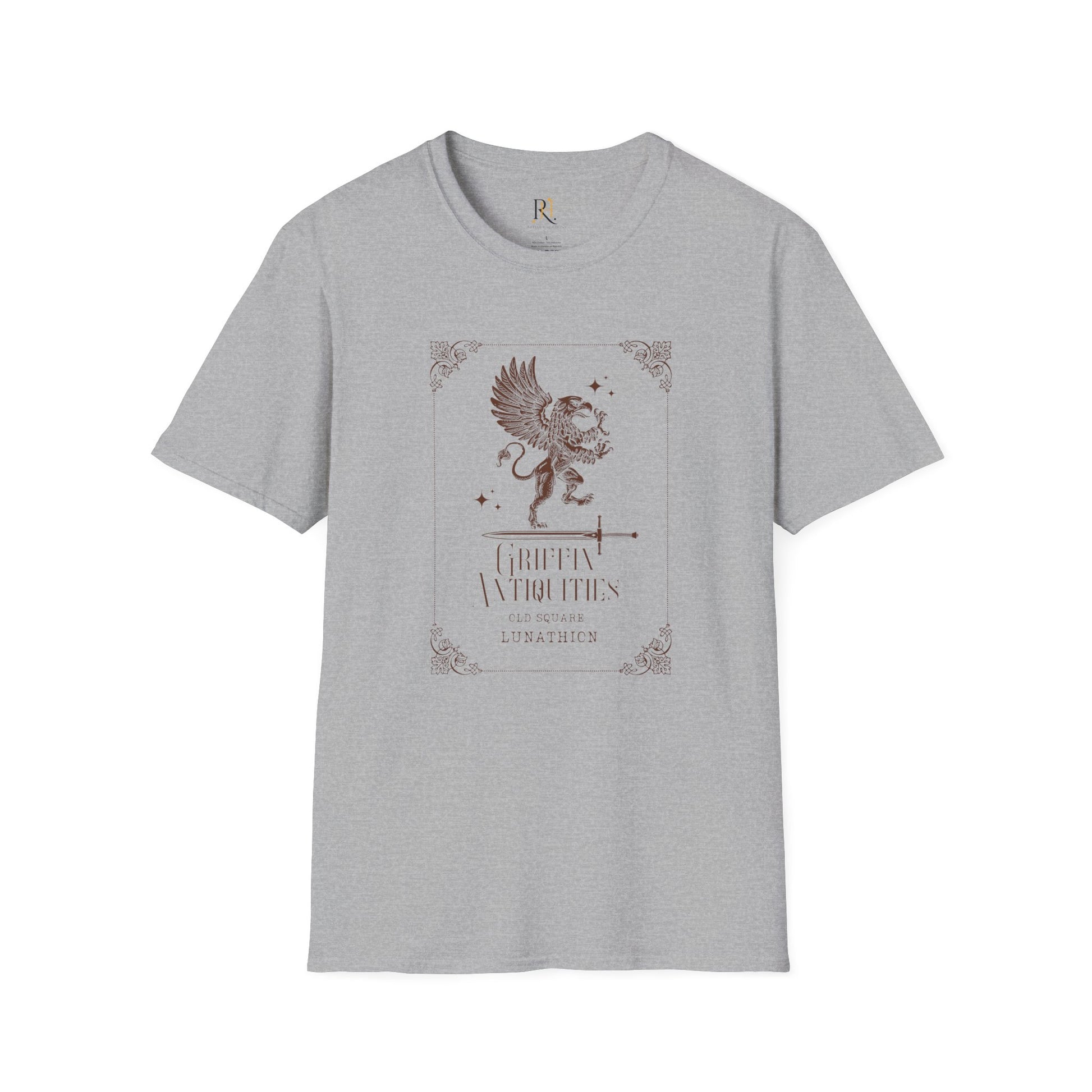 Channel ancient strength and Lunathion legend with this Griffin Antiquities tee, featuring a striking crest-style design inspired by old-world emblems and fantasy lore. Whether you're strolling through Old Square or just repping your favorite magical merchant, this shirt brings that scholarly, mystical energy to any look.