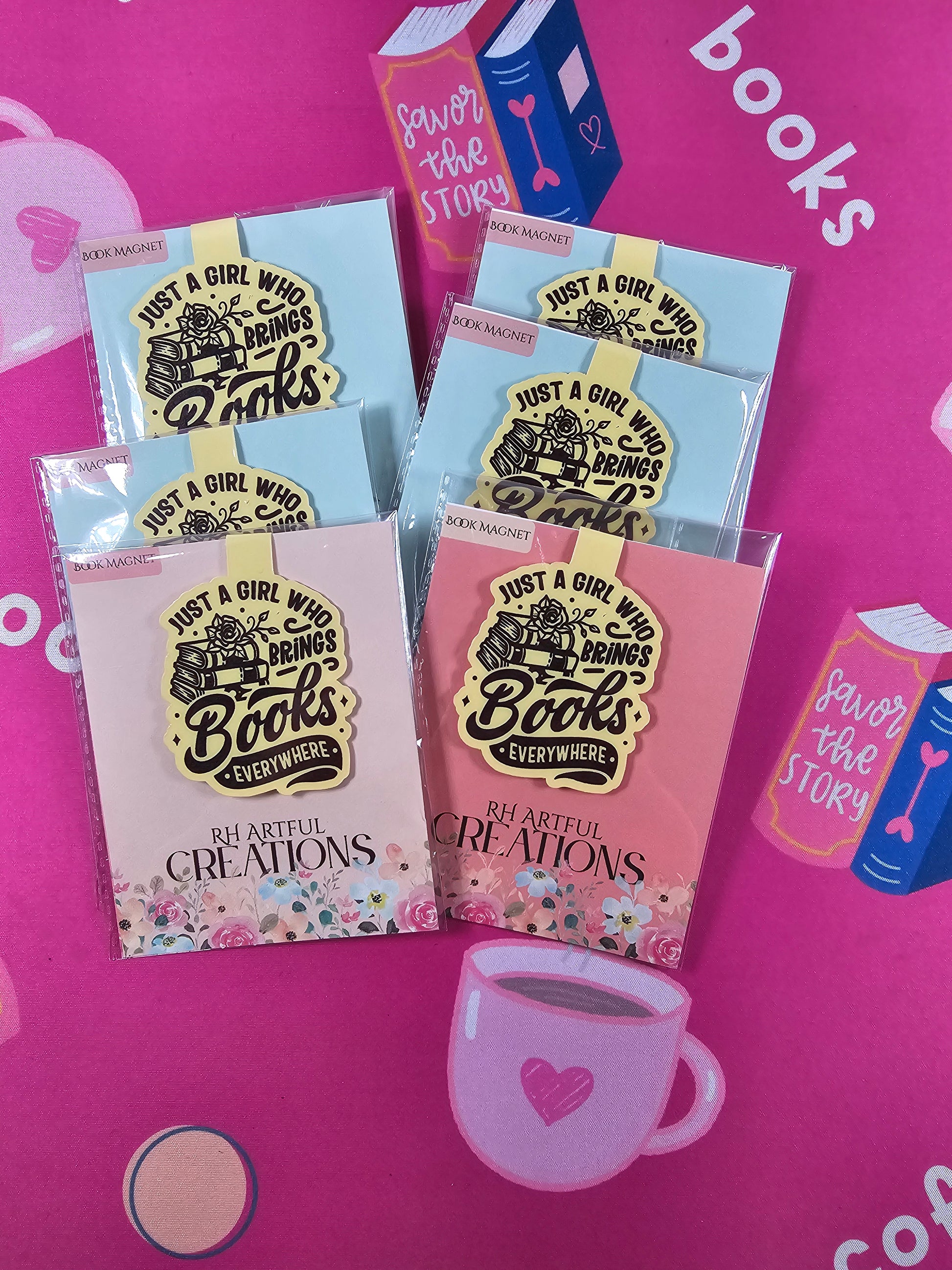 Just a girl who bring books everywhere, Magnetic Bookmark, Handmade gift ideas