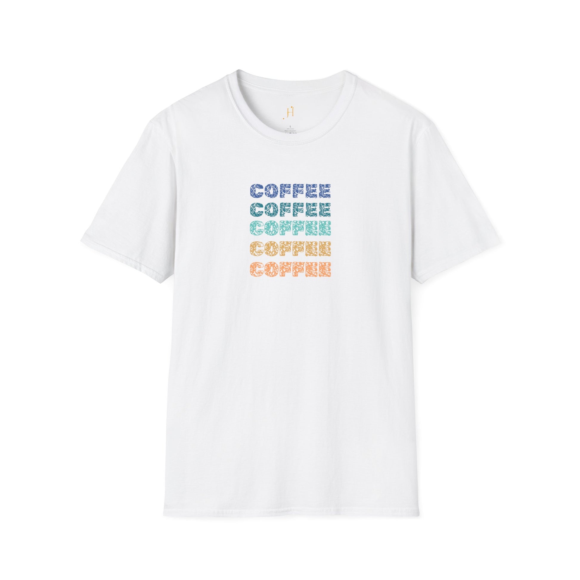 Calling all coffee lovers! This colorful retro-inspired tee is made for mornings, mid-day lattes, and everything in between. Featuring stacked “COFFEE” text in a vibrant rainbow of prints, it’s the perfect everyday shirt for anyone who runs on caffeine and good vibes.